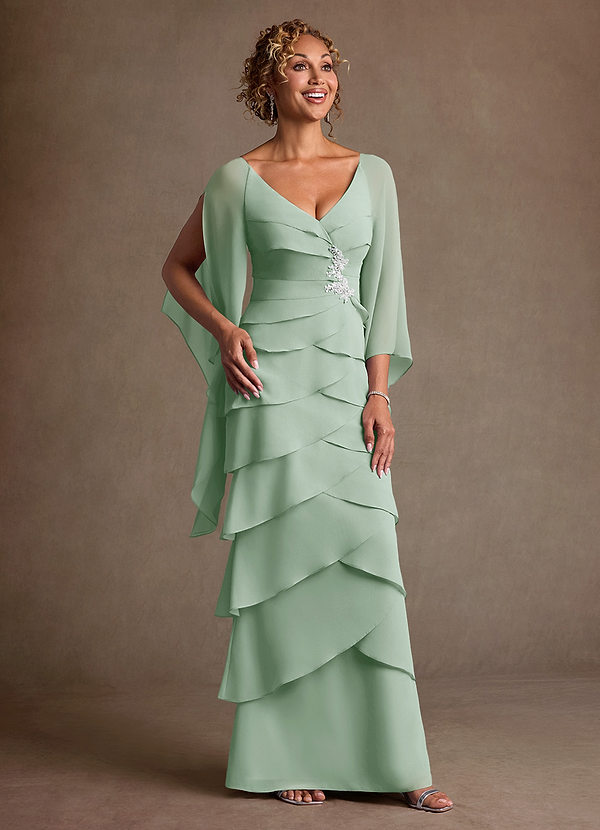Abito A-Line in Chiffon Pizzo Verde Pavone