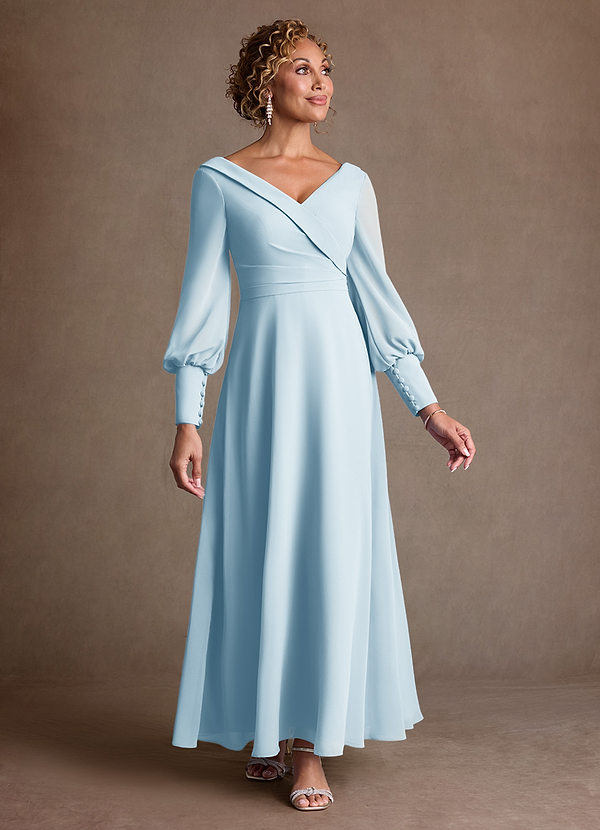 Abito A-Line in Chiffon Plissettato Azzurro