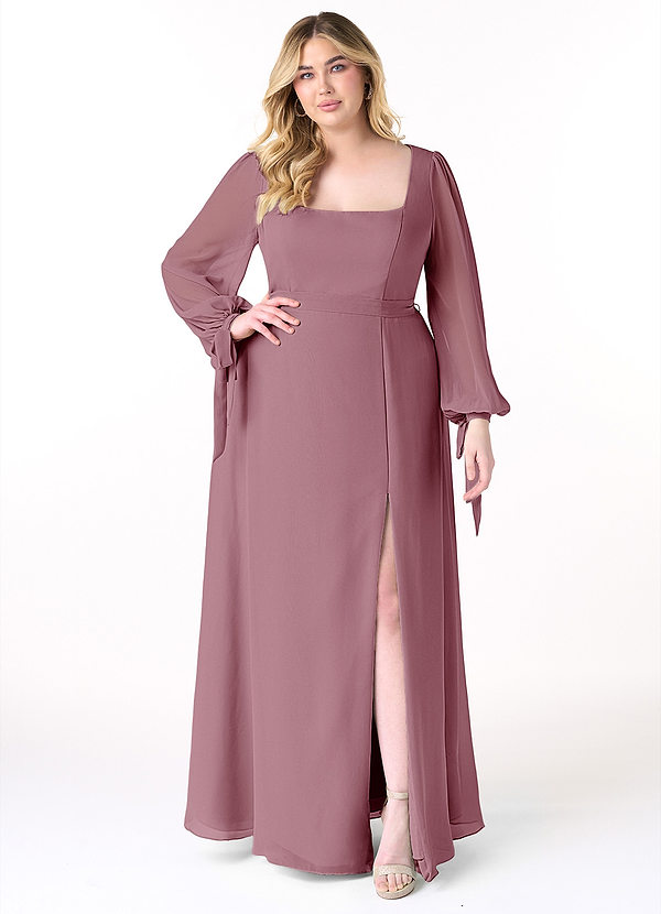Abito A-Line in Chiffon con Maniche lunghe e Scollo a V Gelso