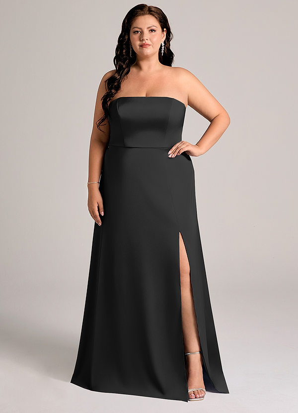 Abito A-Line in Raso Metallizzato Senza Cinturino Nero