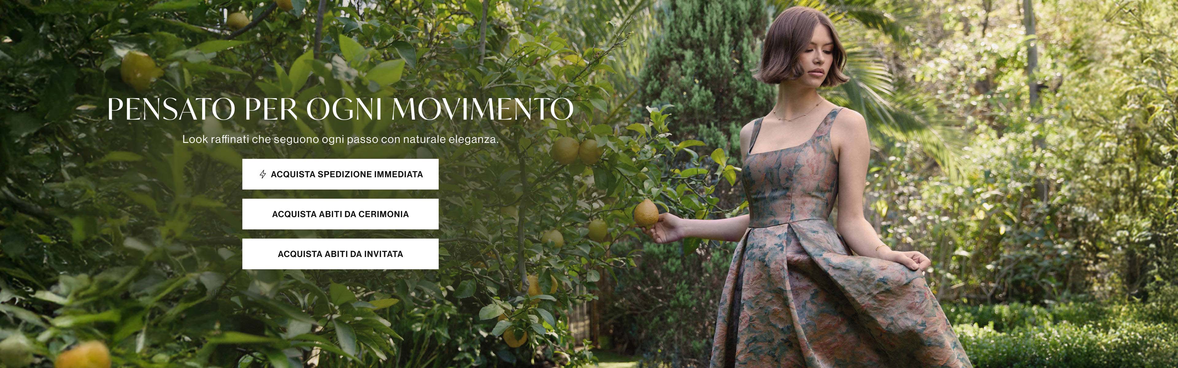 Che tu stia partecipando a un ballo di fine anno, a una festa o a un matrimonio, la nostra collezione di abiti da cerimonia accuratamente selezionata può soddisfare le tue esigenze per ogni tipo di occasione formale. Ogni abito è progettato con cura per garantirti la massima brillantezza e fascino in ogni momento importante.