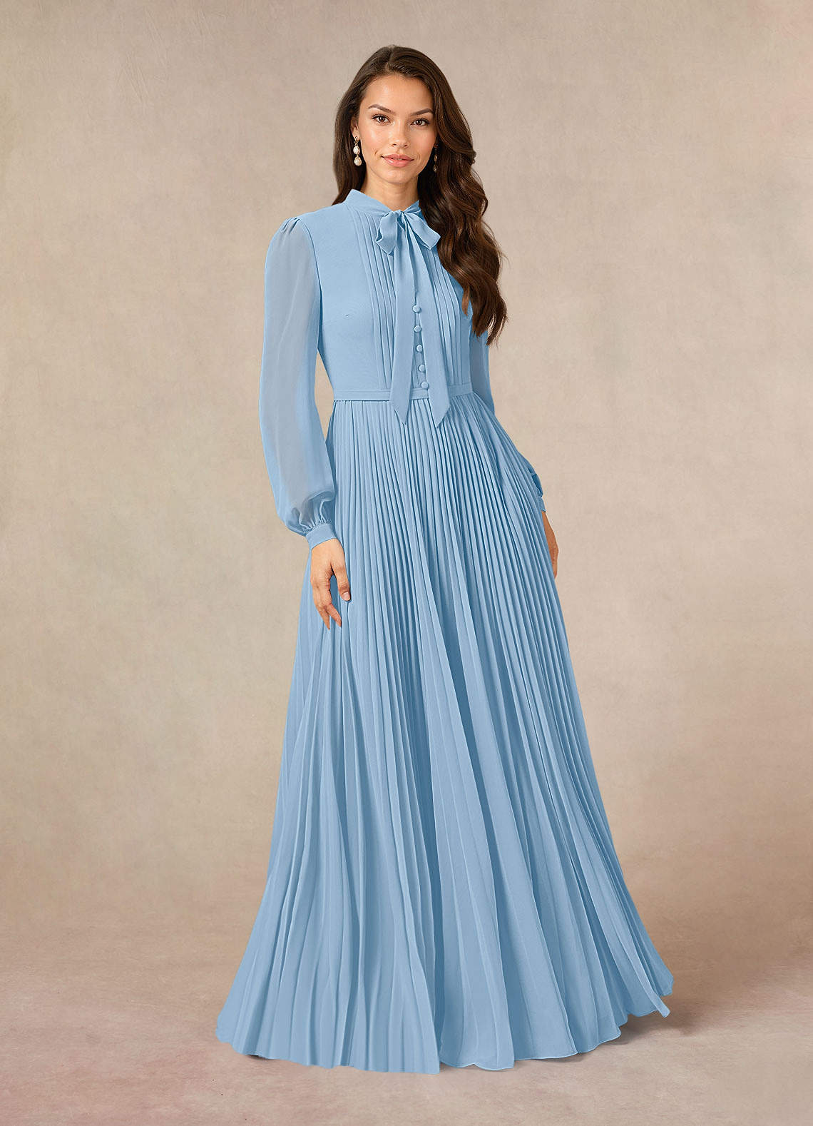 Abito A-Line in Chiffon Plissettato Azzurro Polvere