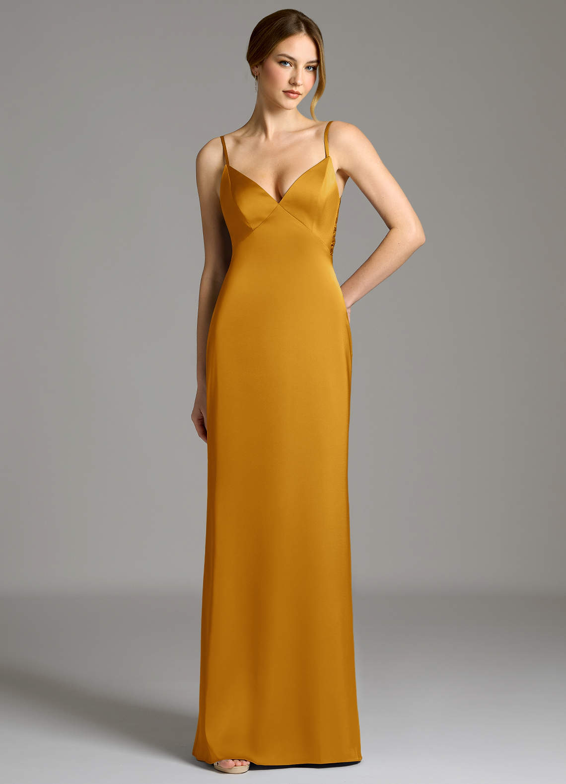 Abito Tubino in Raso Elasticizzato Fiocco Caramello