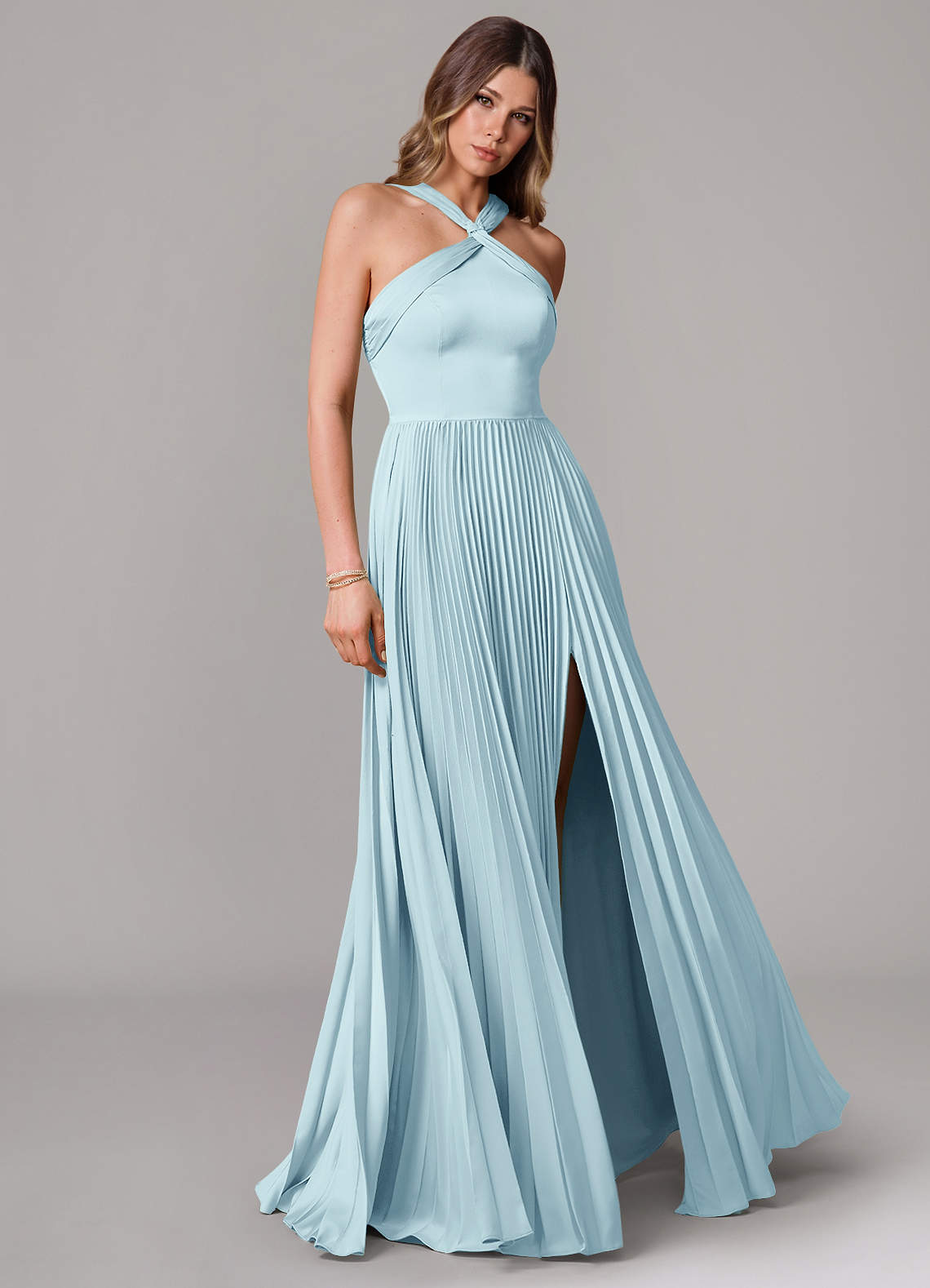 Abito A-Line in Raso Elasticizzato Plissettato Nuvola Blu