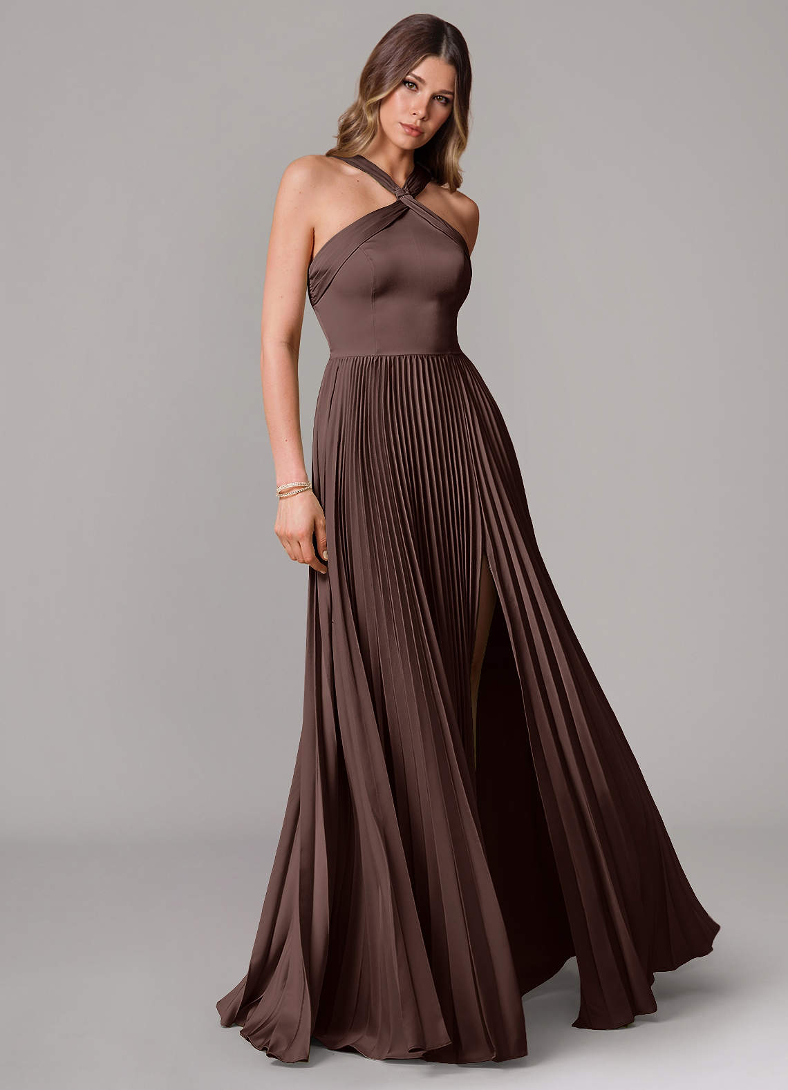 Abito A-Line in Raso Elasticizzato Plissettato Ganache