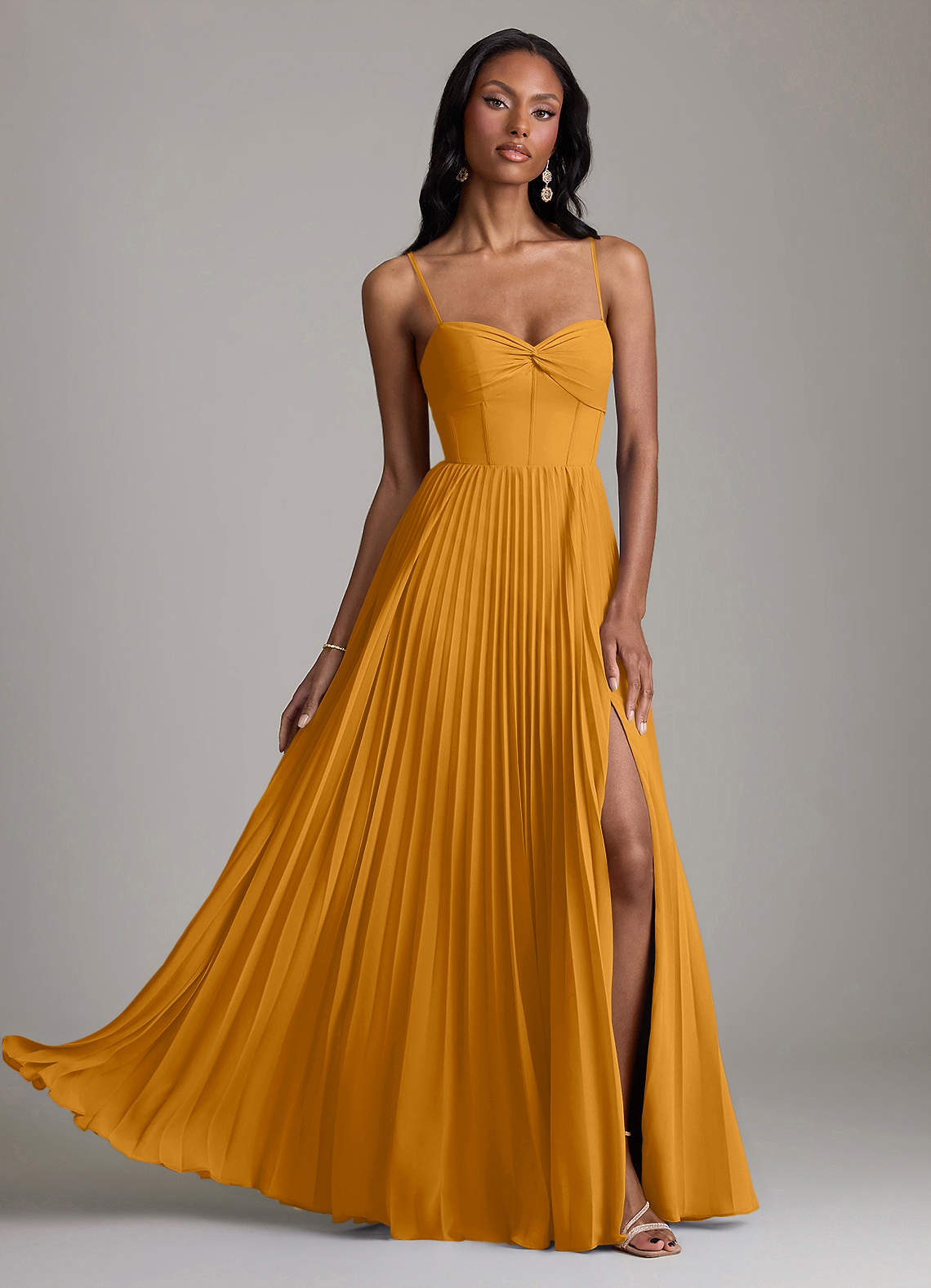 Abito A-Line in Chiffon Scollo a Cuore Caramello