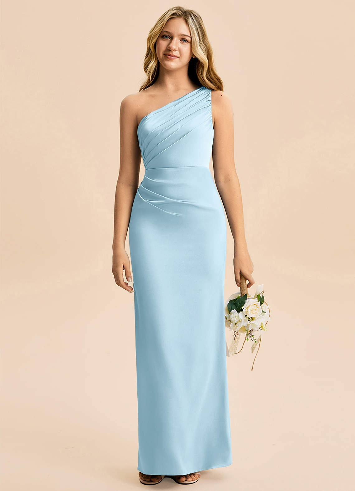 Abito Tubino in Raso Elasticizzato Plissettato Azzurro
