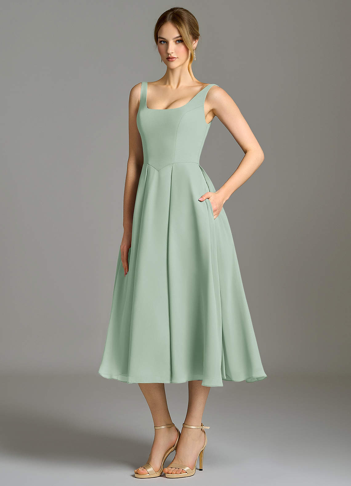 Abito A-Line in Chiffon Plissettato Agave