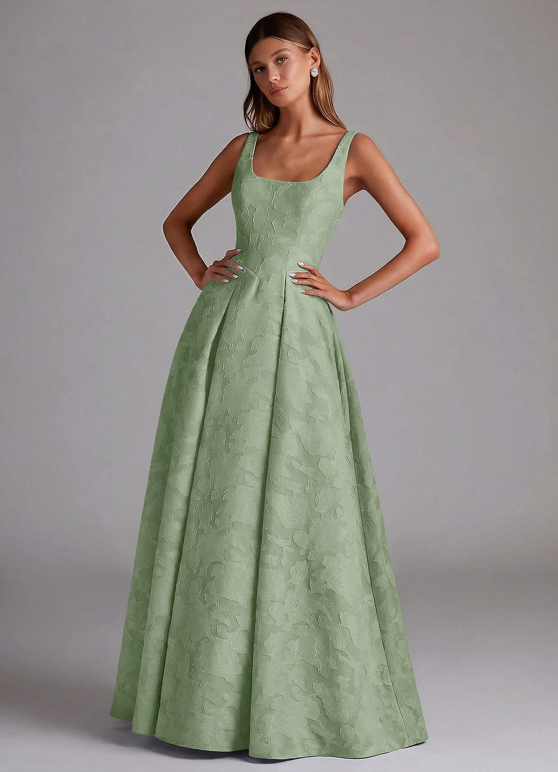 Abito A-Line in Burnout Floreale Plissettato Verde Salvia
