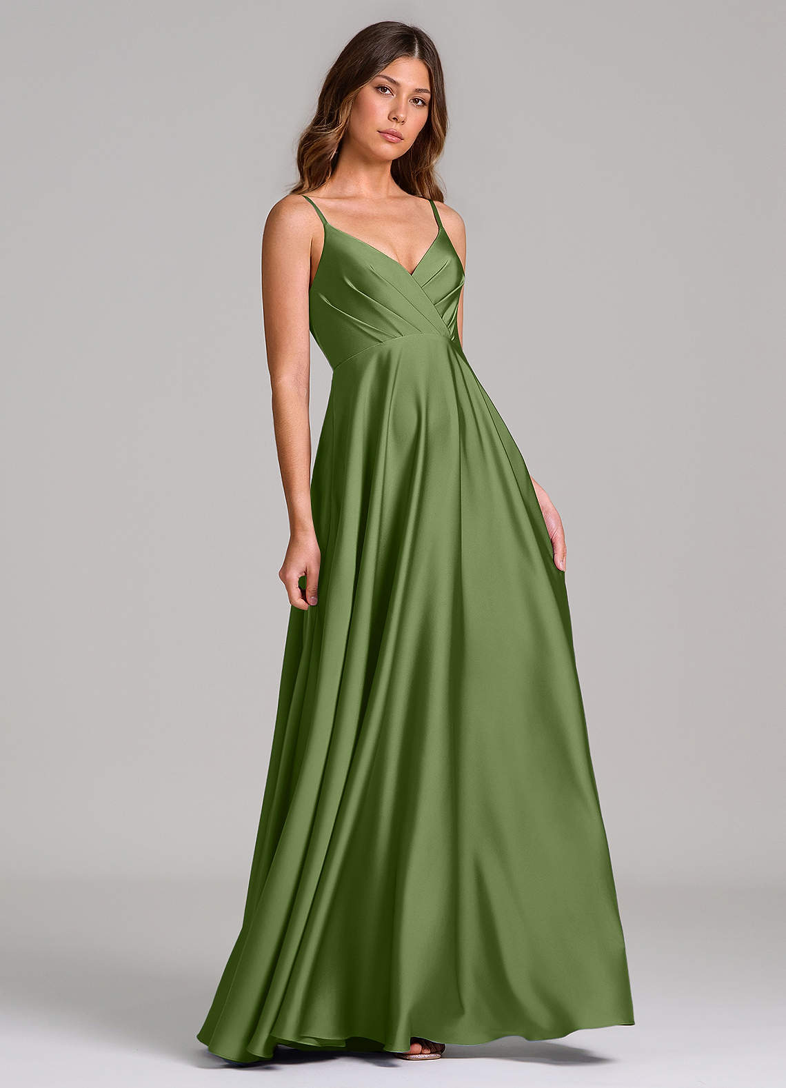 Abito A-Line in Raso Elasticizzato Plissettato Ginepro