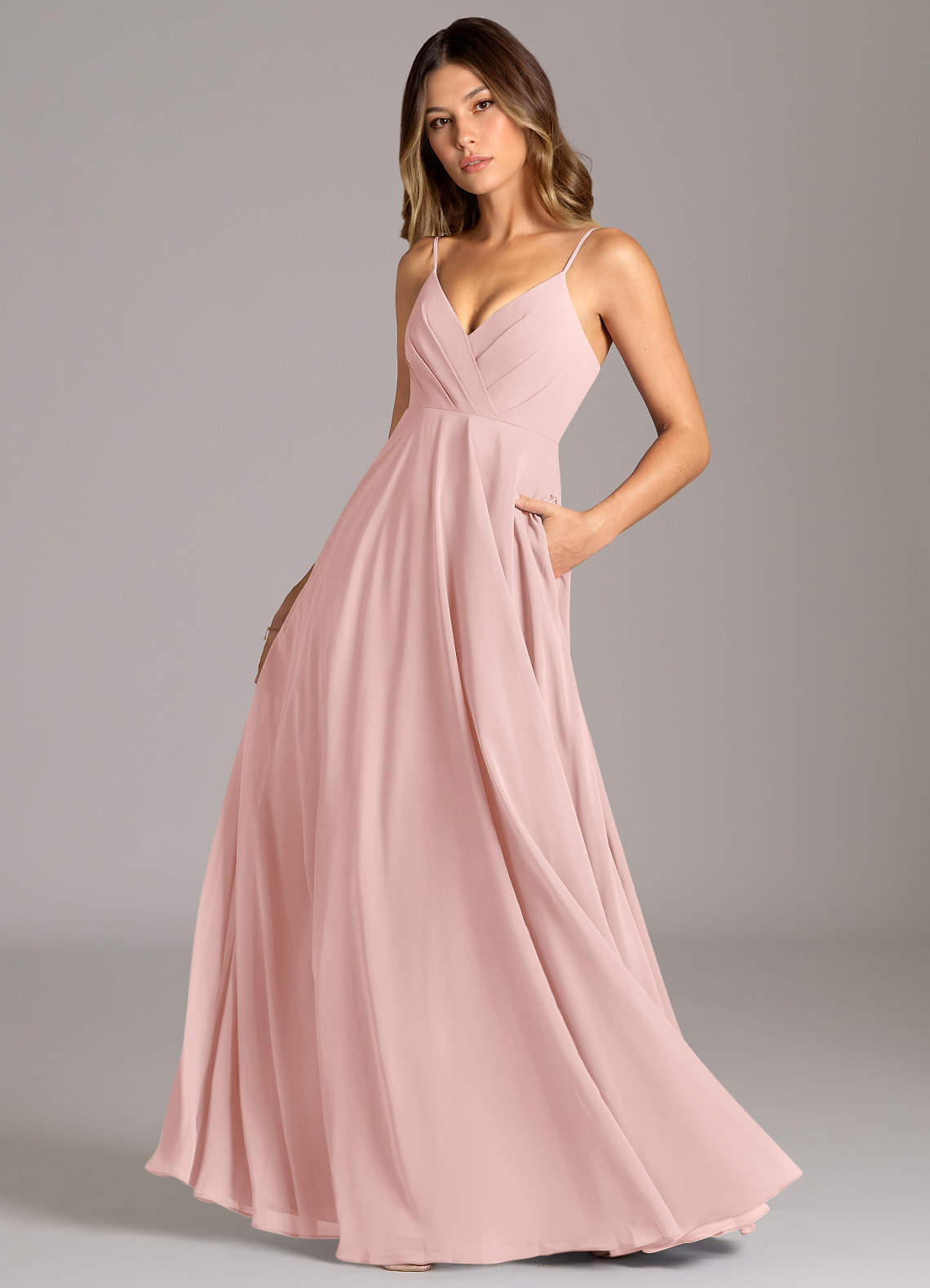 Abito A-Line in Chiffon Plissettato Rosa Cipria