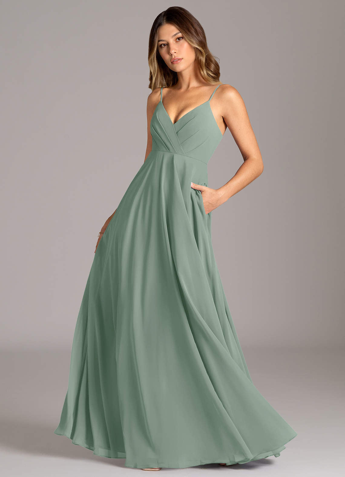 Abito A-Line in Chiffon Plissettato Salvia Argentata