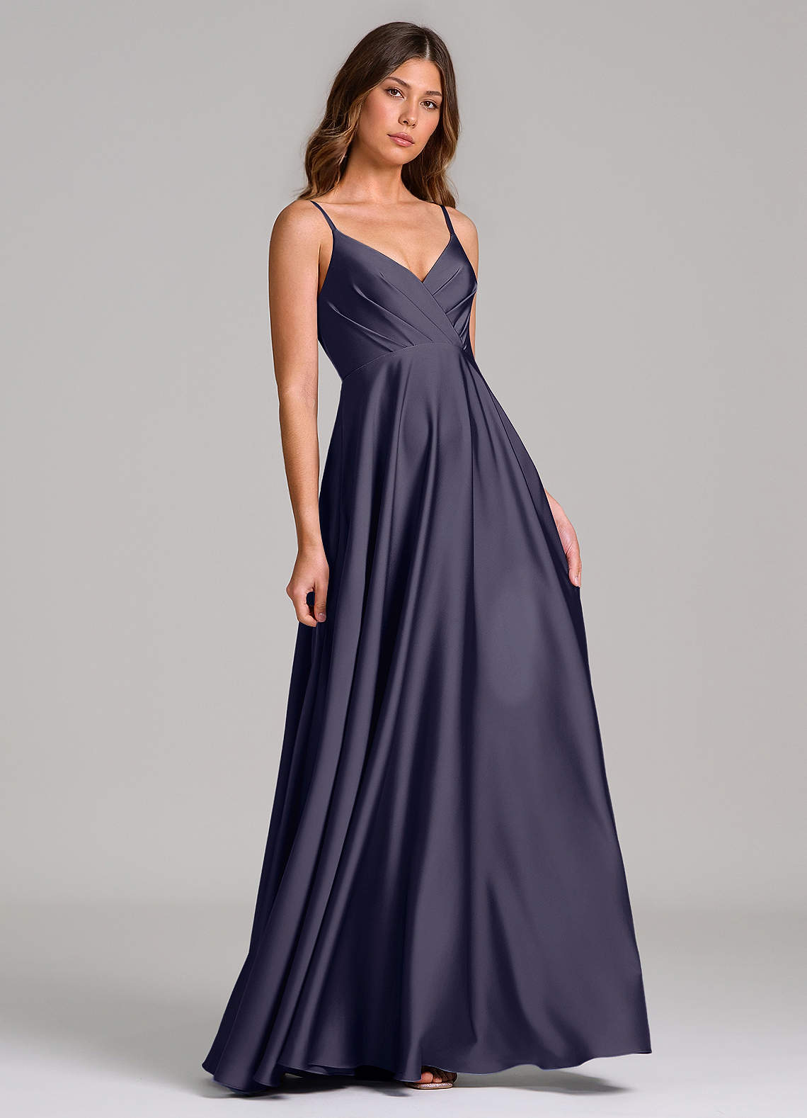 Abito A-Line in Raso Elasticizzato Plissettato Stormy
