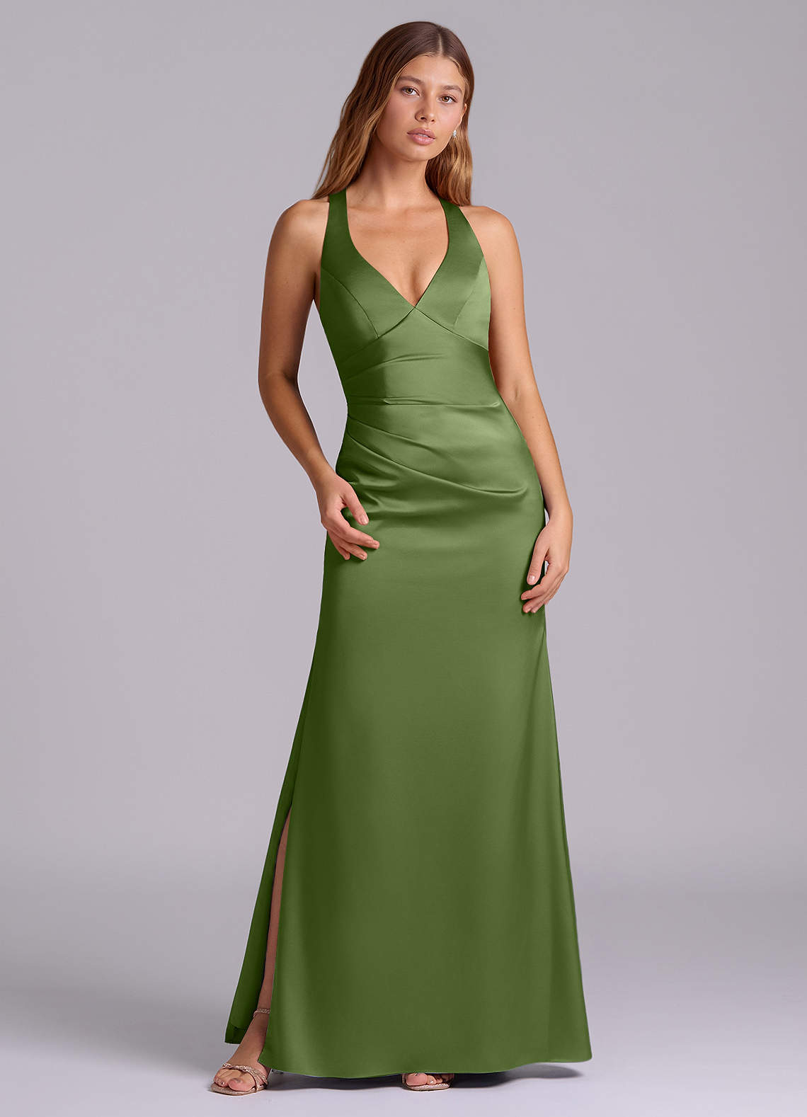 Abito A-Line in Raso Elasticizzato Plissettato Ginepro