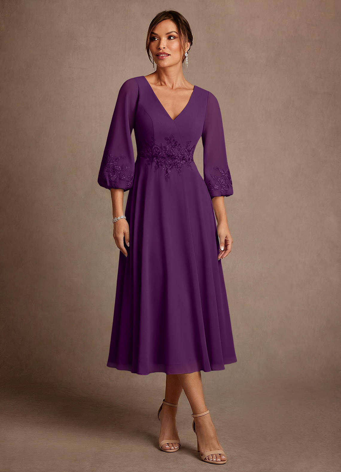 Abito A-Line in Chiffon Pizzo Uva