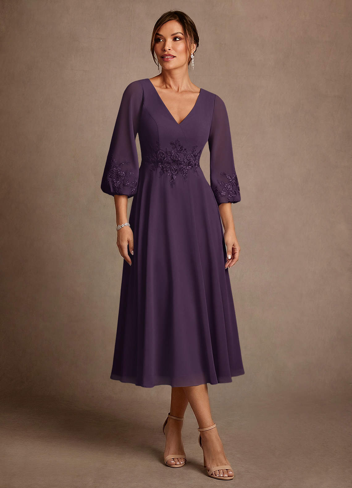 Abito A-Line in Chiffon Pizzo Prugna