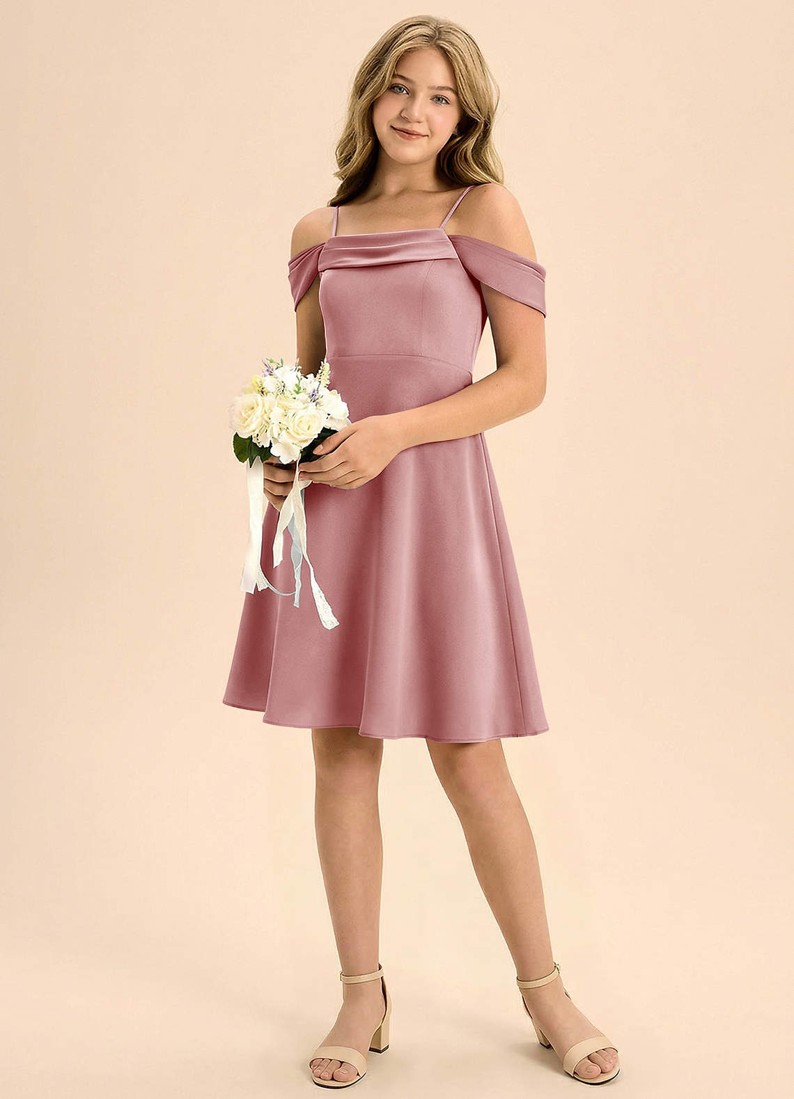 Abito A-Line in Raso Elasticizzato Plissettato Rosa Polverosa
