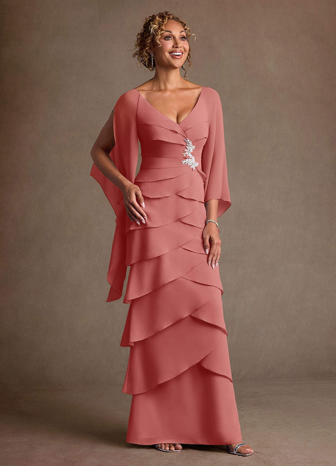 Abito Tubino in Chiffon Increspato Rosa Antica