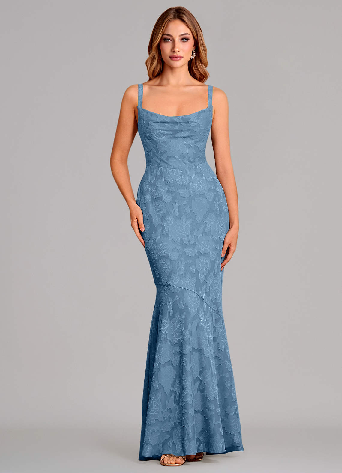 Abito Sirena in Burnout Floreale Fiocco Blu Acciaio