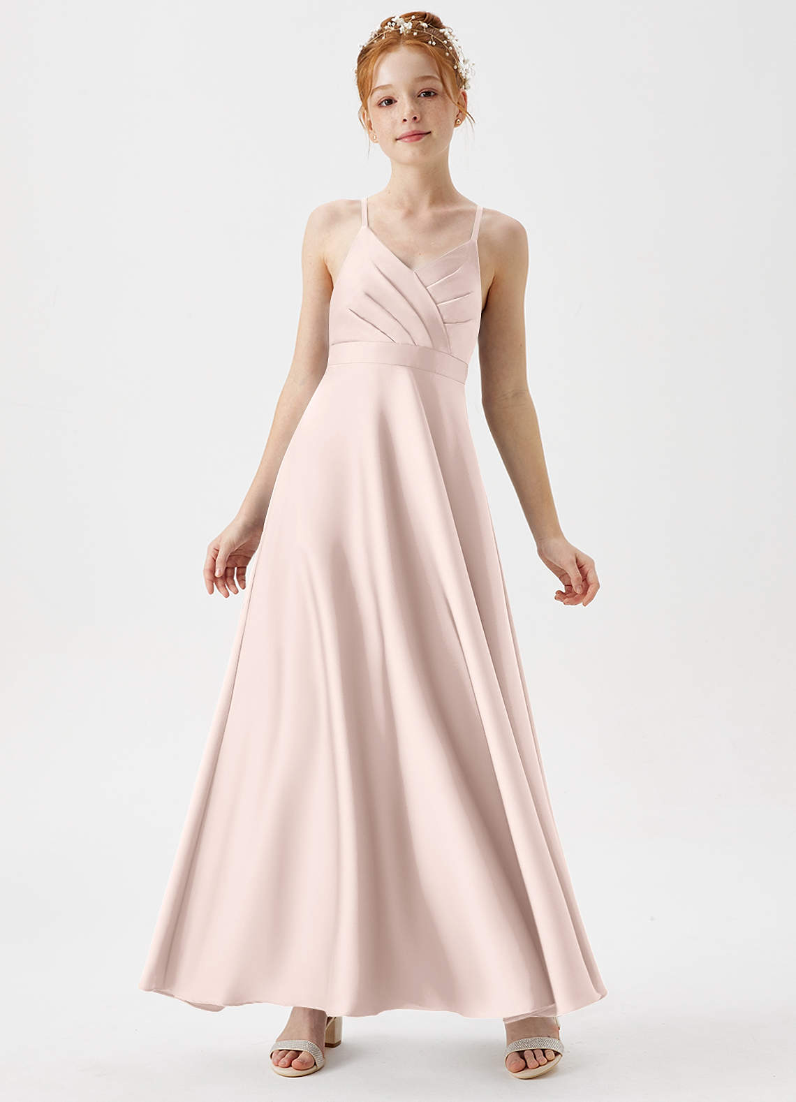 Abito A-Line in Raso Elasticizzato Plissettato Rosa Rossore