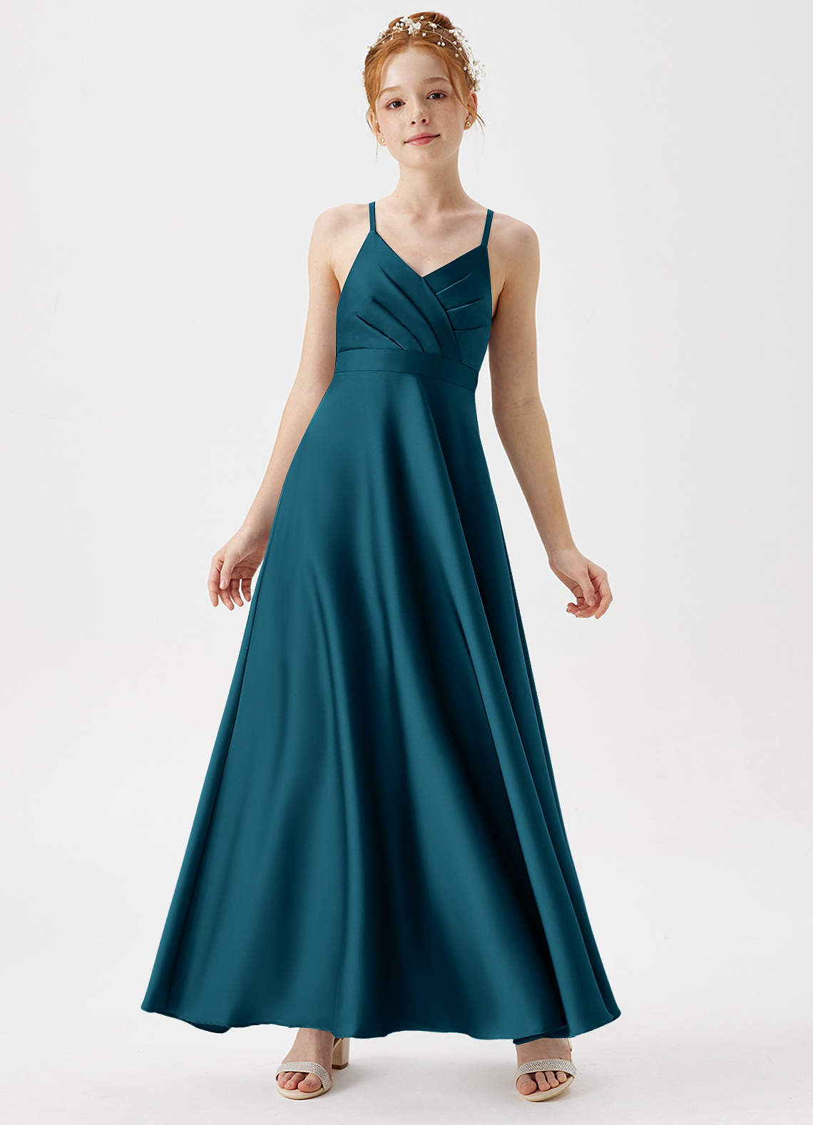 Abito A-Line in Raso Elasticizzato Plissettato Blu Inchiostro