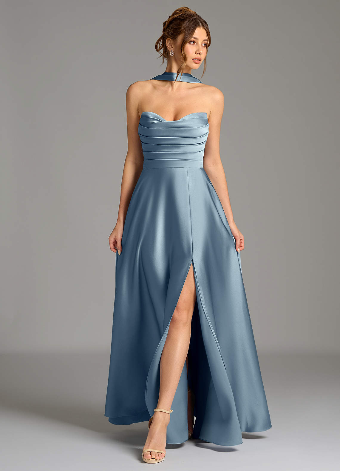 Abito A-Line in Raso Elasticizzato Corsetto Blu Polveroso