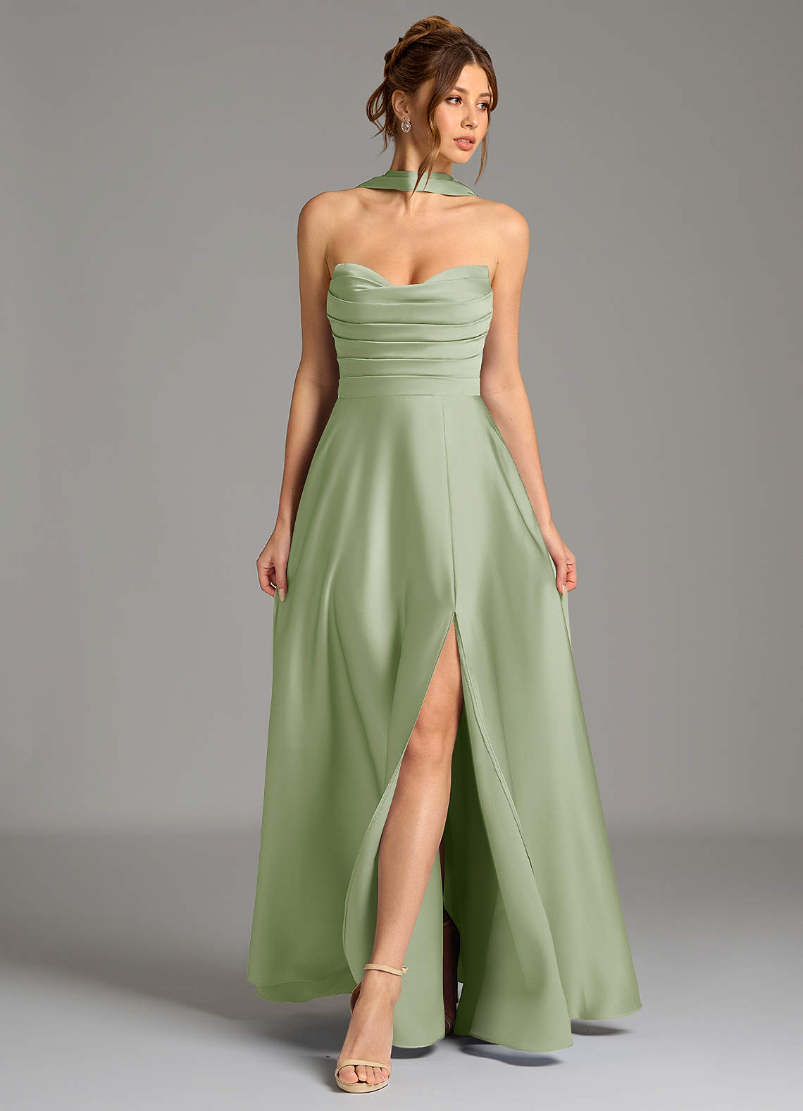 Abito A-Line in Raso Elasticizzato Corsetto Verde Salvia