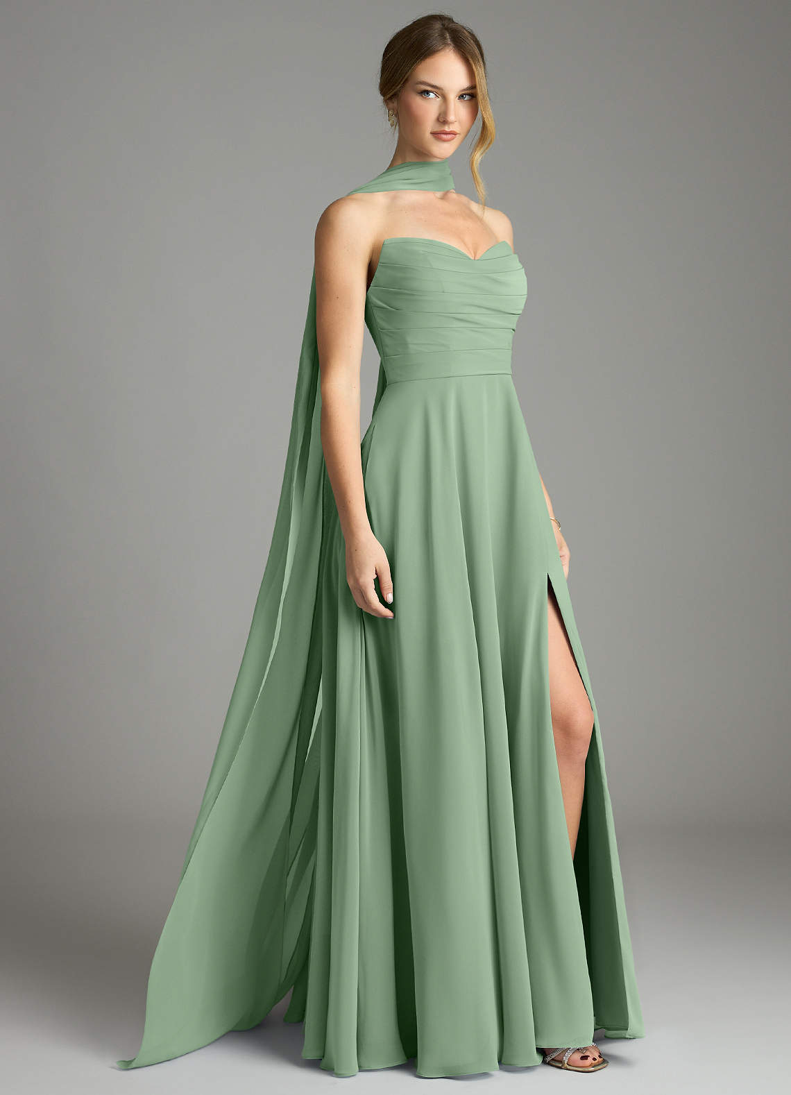 Abito A-Line in Chiffon Scollo a Cuore Matcha