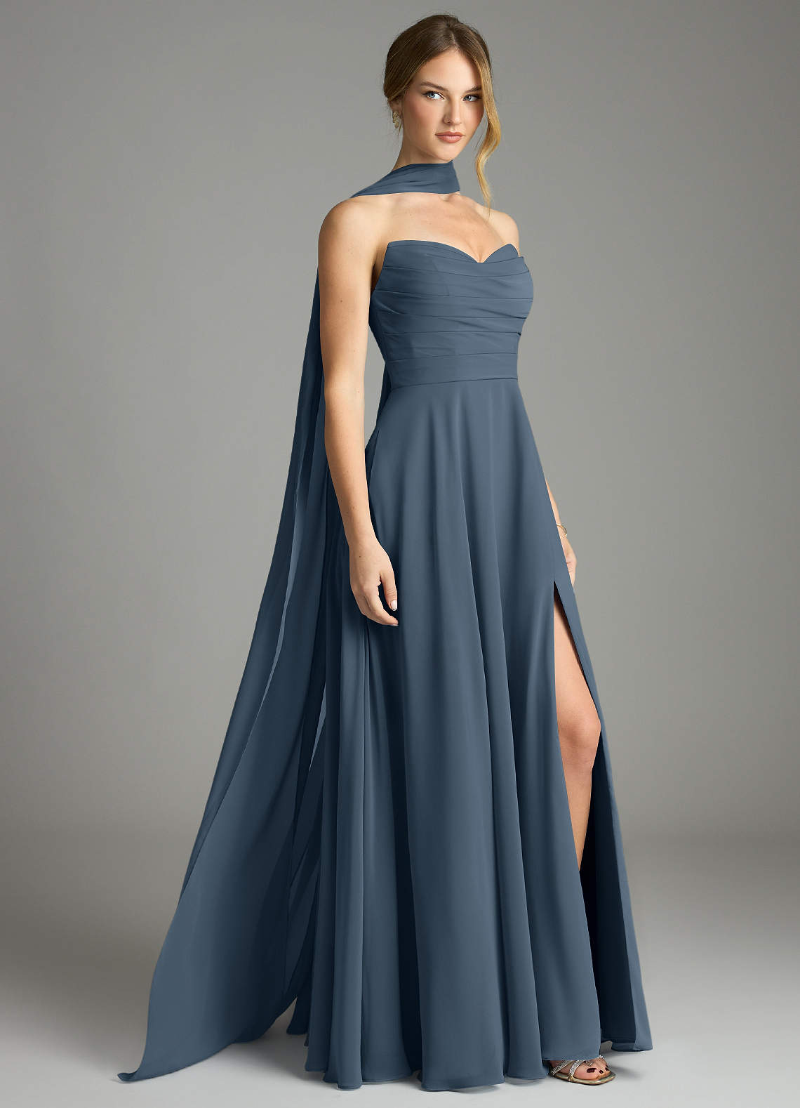 Abito A-Line in Chiffon Scollo a Cuore Blu Nettuno