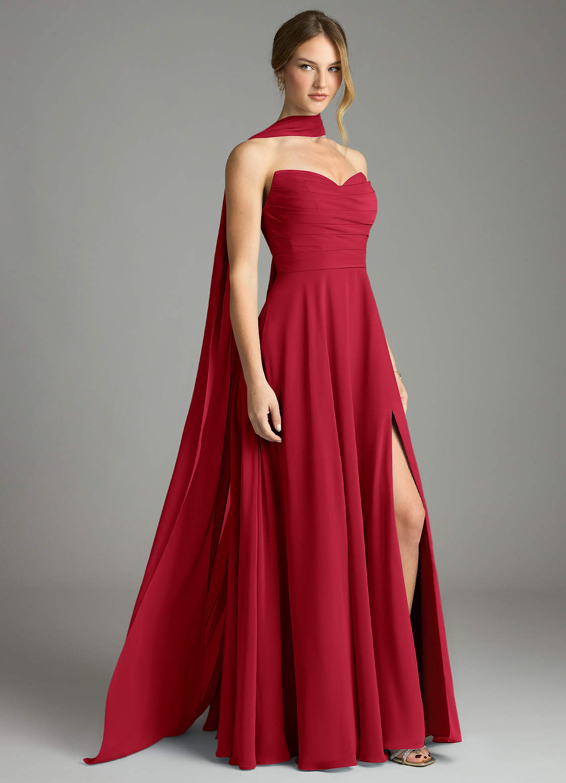 Abito A-Line in Chiffon Scollo a Cuore Scarlatto