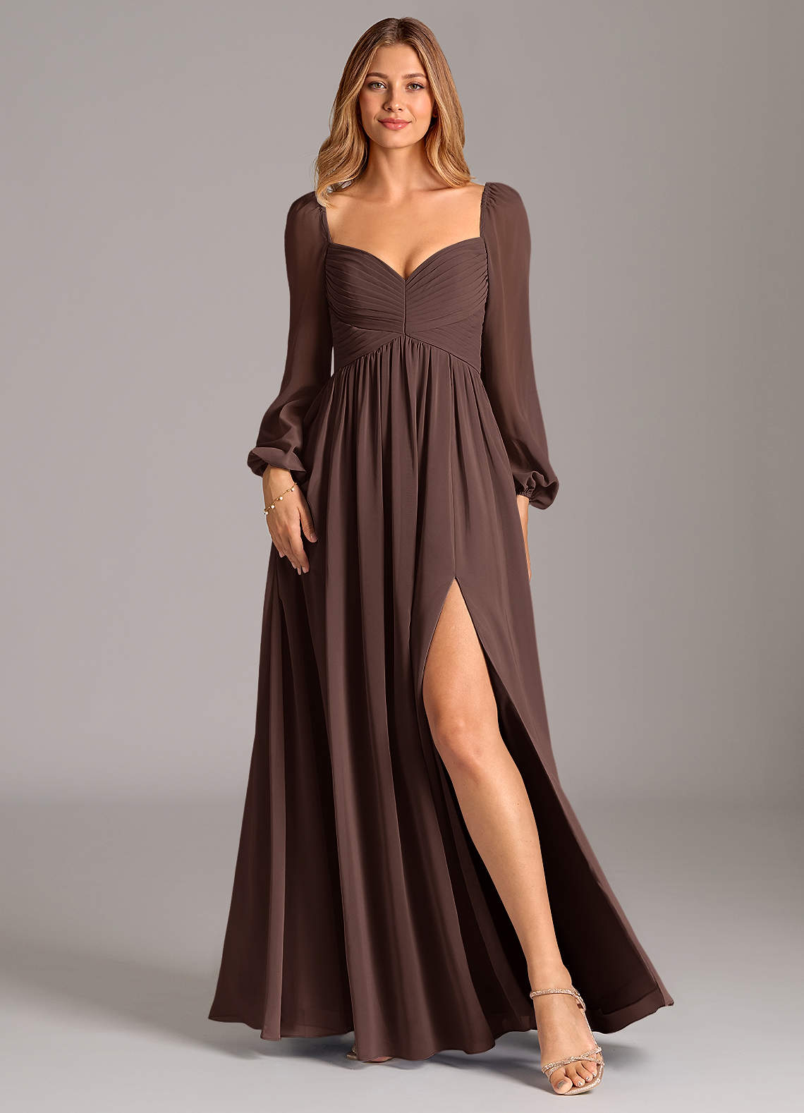 Abito A-Line in Chiffon Manica Lunga Ganache