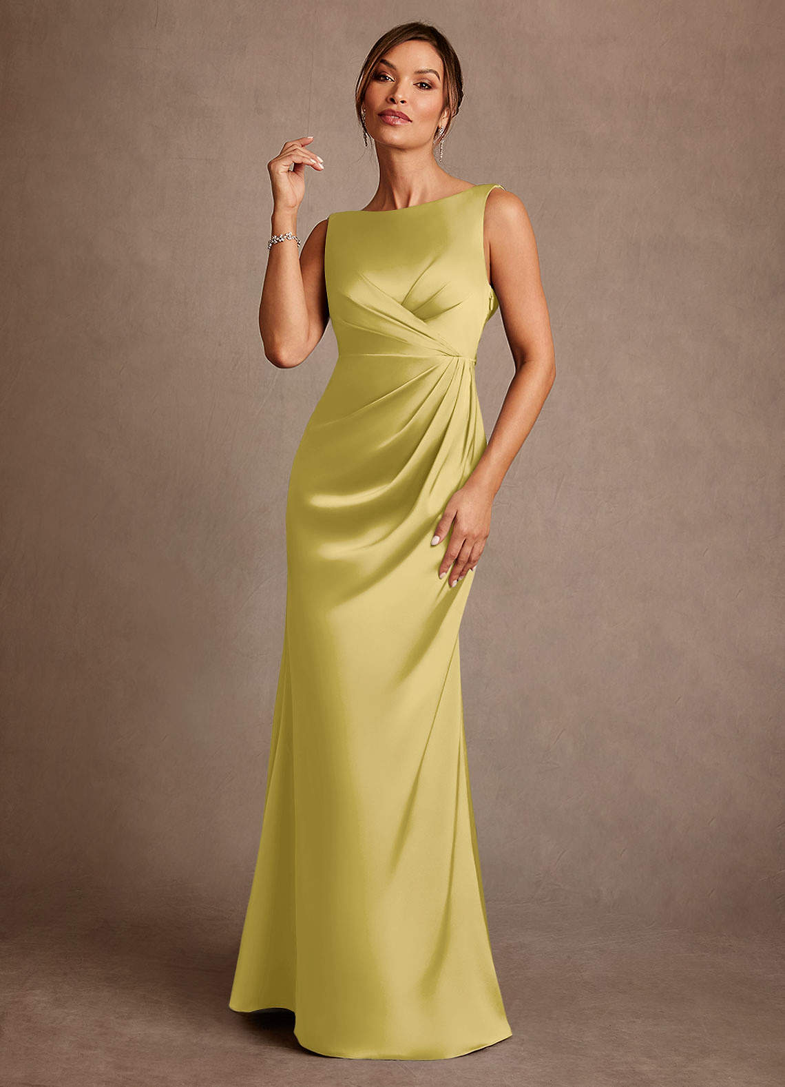 Abito A-Line in Raso Elasticizzato Plissettato Canarino