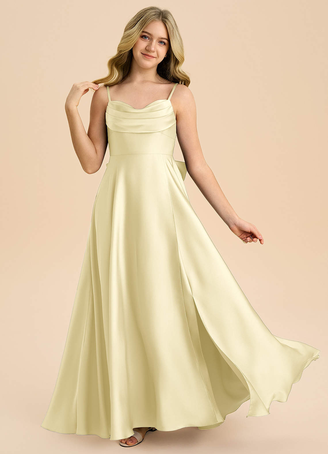 Abito A-Line in Raso Elasticizzato Scollo a Cuore Sorbetto Al Limone