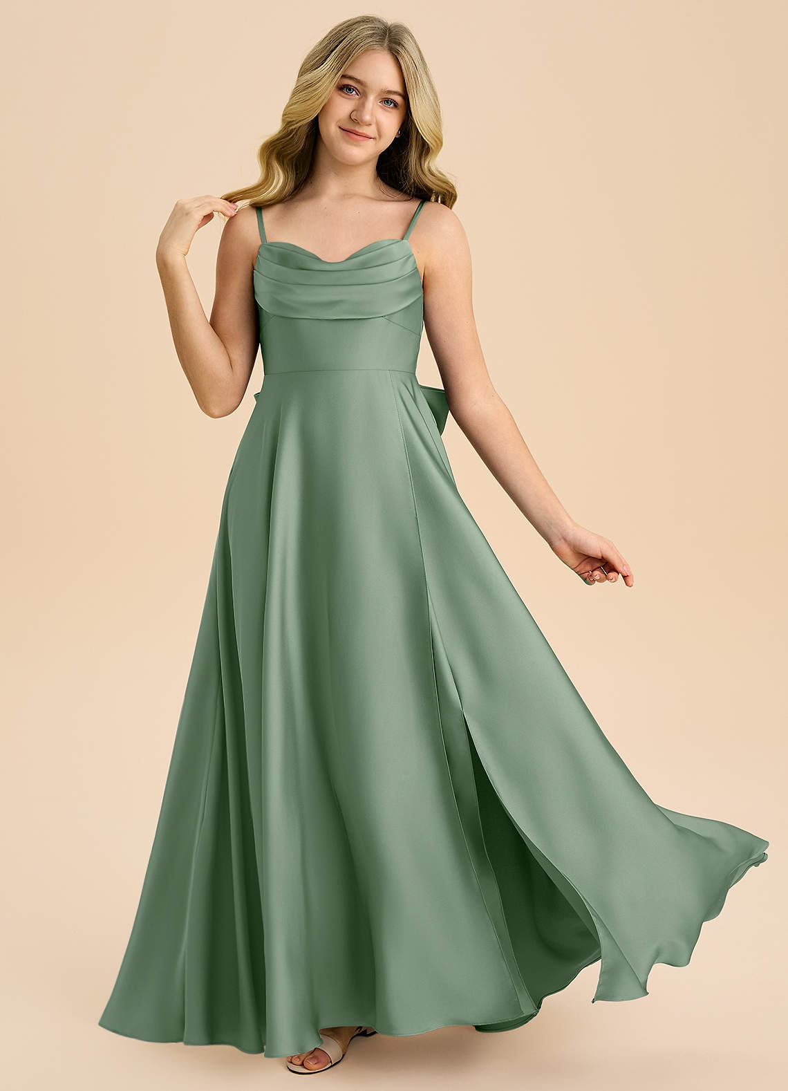 Abito A-Line in Raso Elasticizzato Scollo a Cuore Matcha