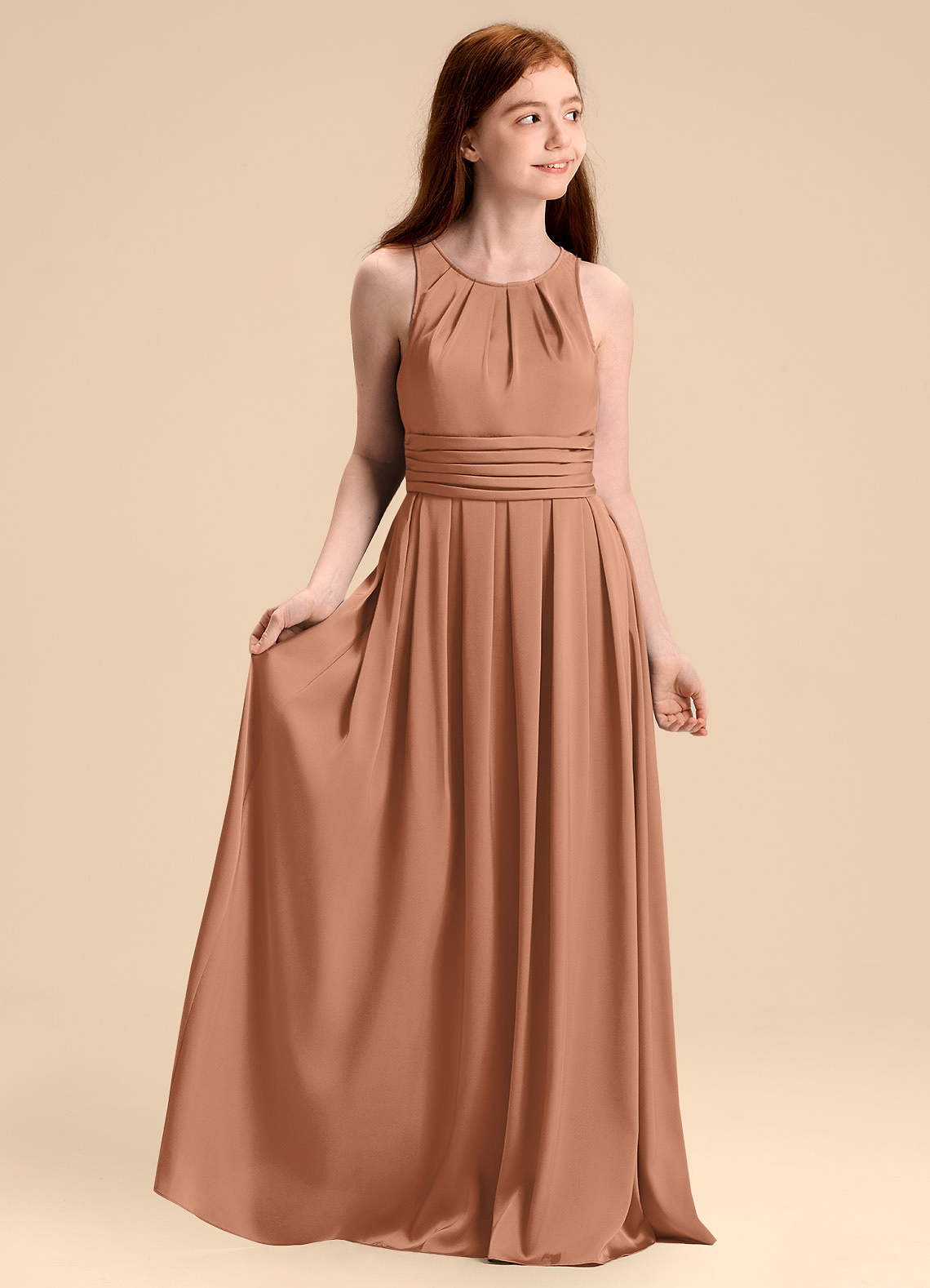 Abito A-Line in Raso Elasticizzato Plissettato Bronzo