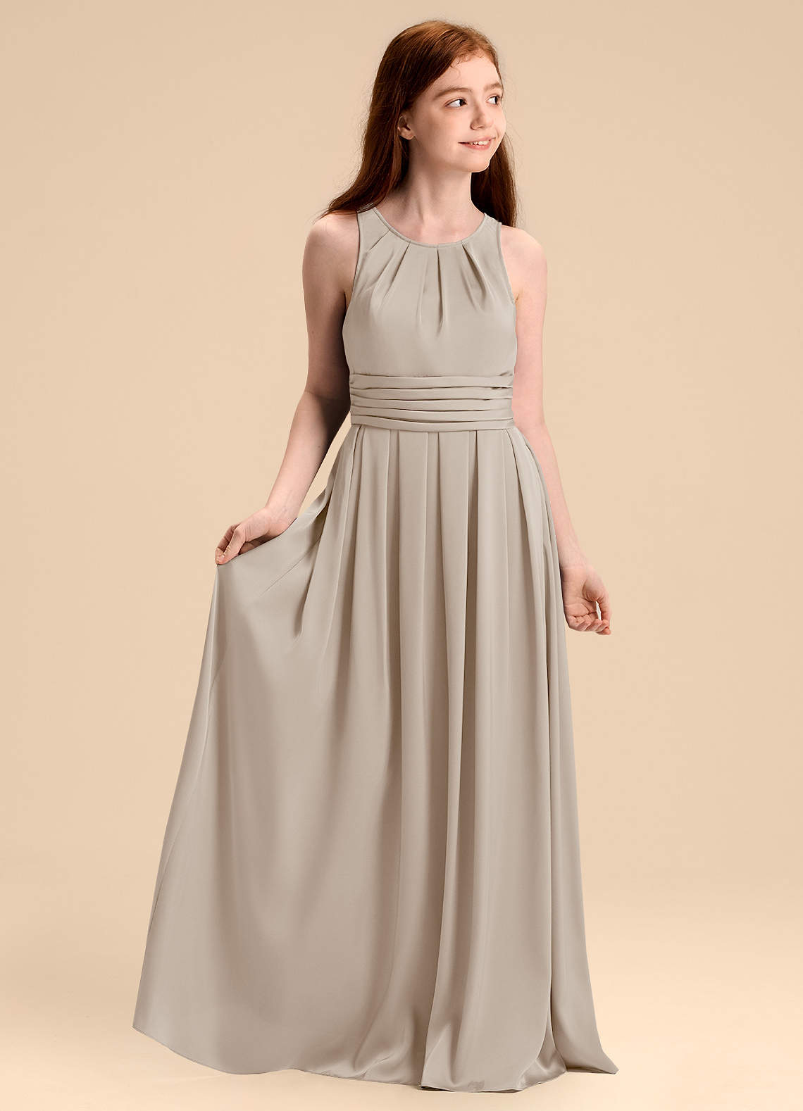 Abito A-Line in Raso Elasticizzato Plissettato Gelo