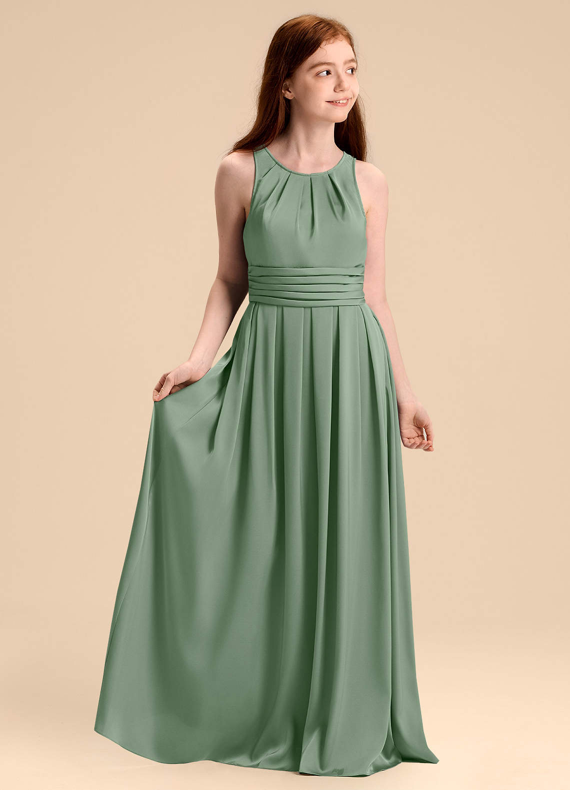 Abito A-Line in Raso Elasticizzato Plissettato Matcha