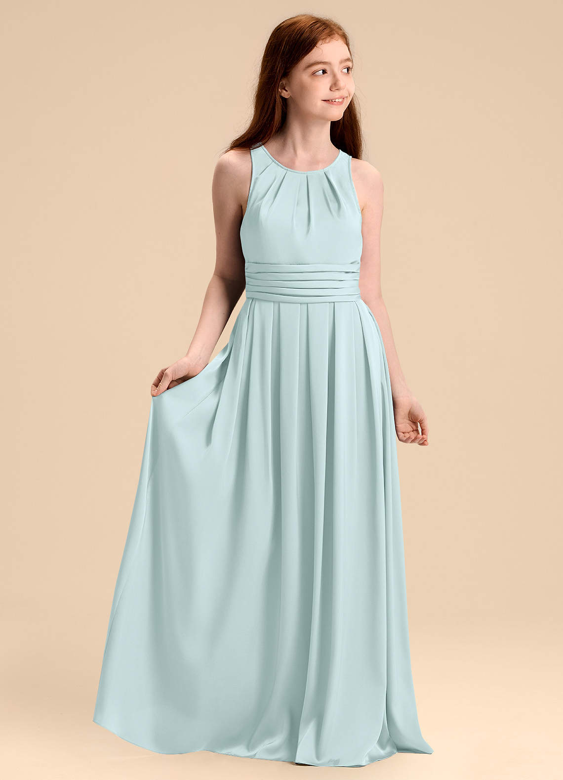 Abito A-Line in Raso Elasticizzato Plissettato Sea Glass