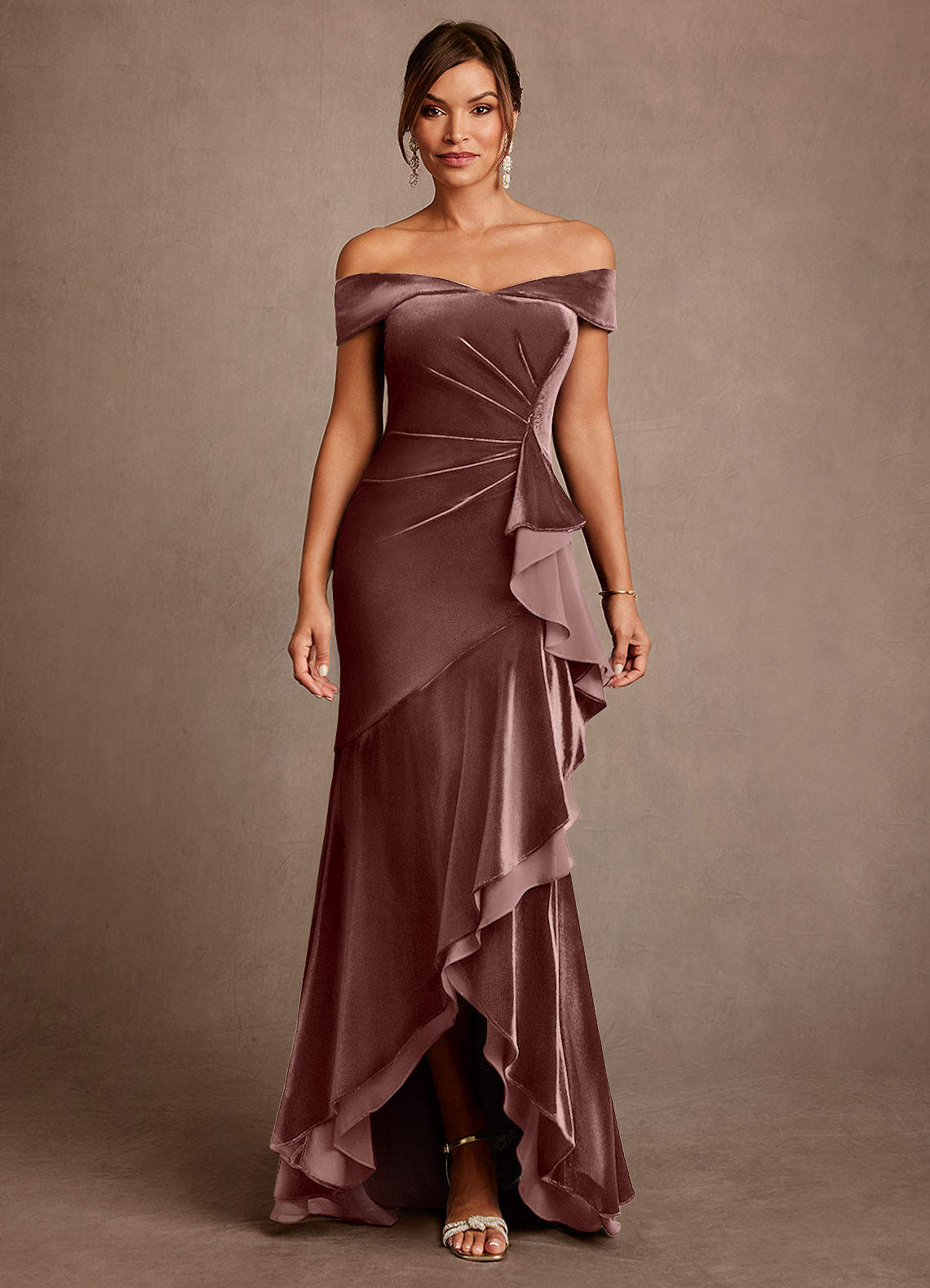 Abito Sirena in Velluto a Spalla Scoperta Espresso