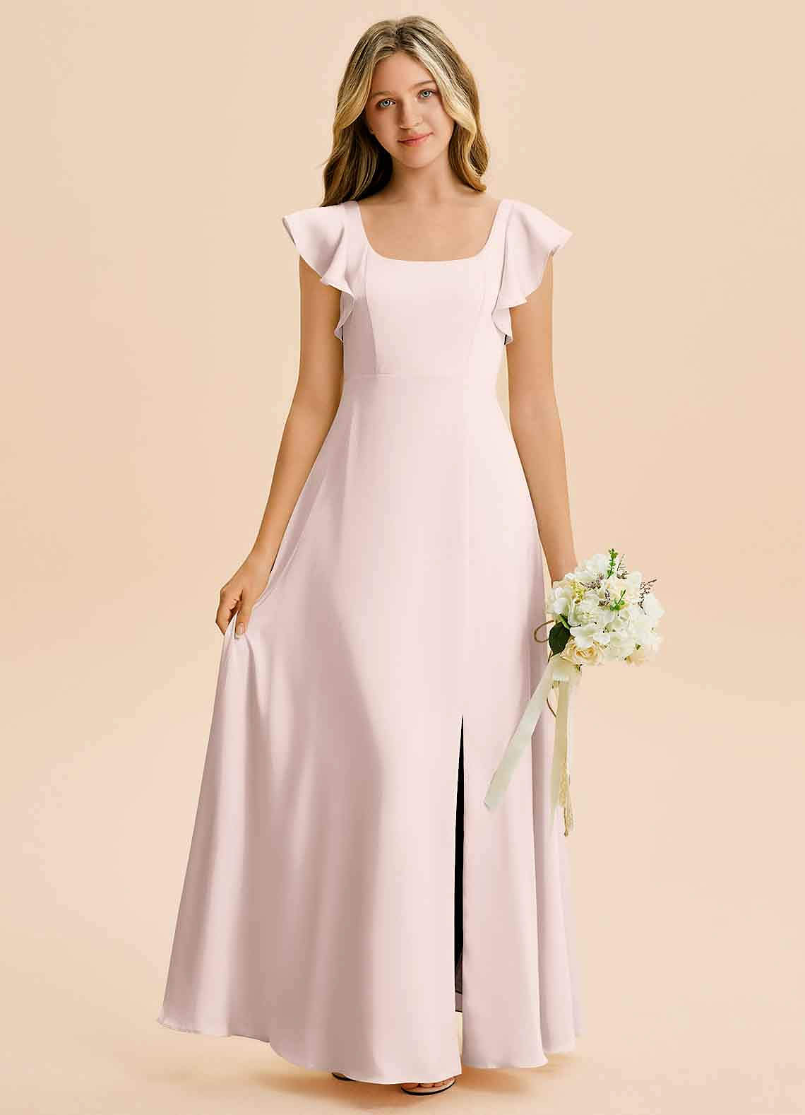 Abito A-Line in Raso Elasticizzato Spacco Laterale Rosa Rossore