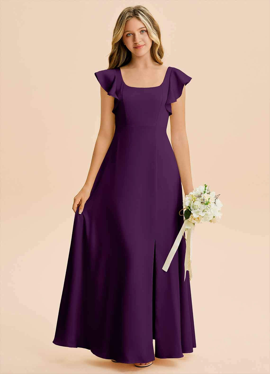 Abito A-Line in Raso Elasticizzato Spacco Laterale Uva