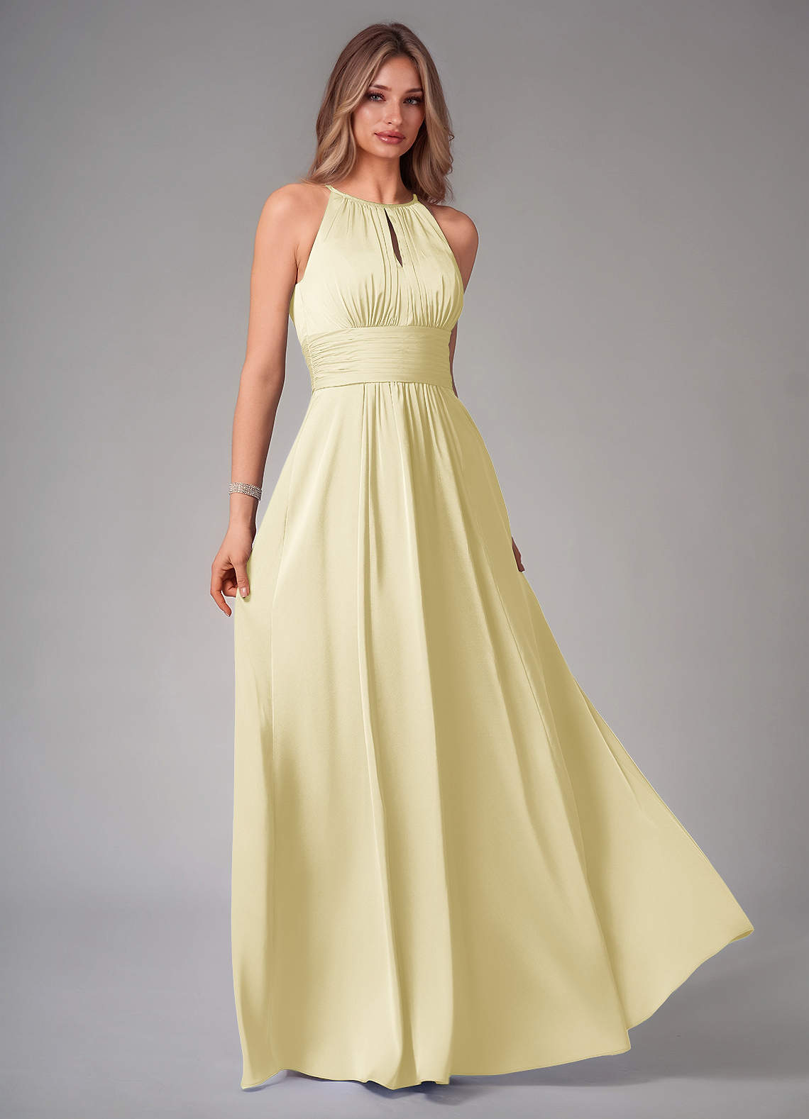 Abito A-Line in Raso Elasticizzato Plissettato Sorbetto Al Limone