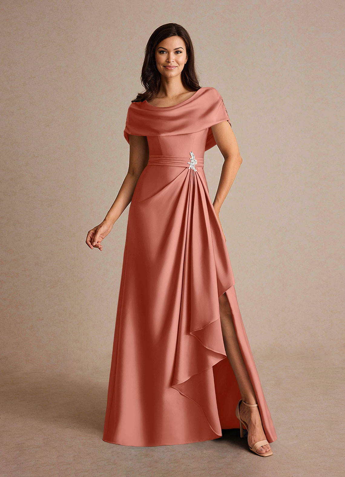 Abito A-Line in Raso Elasticizzato Plissettato Salmone Rosa