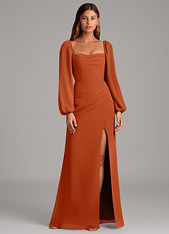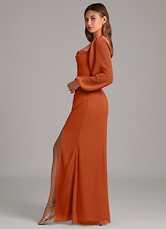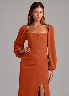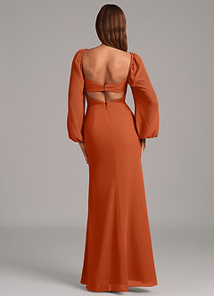 Abito Sirena in Chiffon Manica Lunga Arancia Bruciata