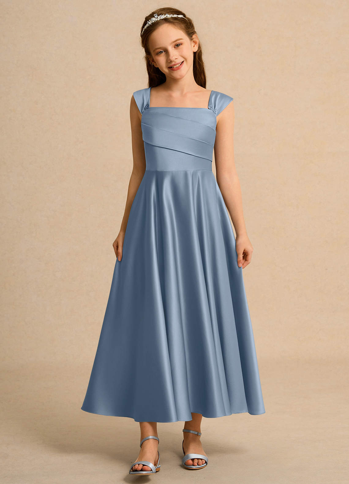 Abito A-Line in Raso Opaco Plissettato Blu Polveroso