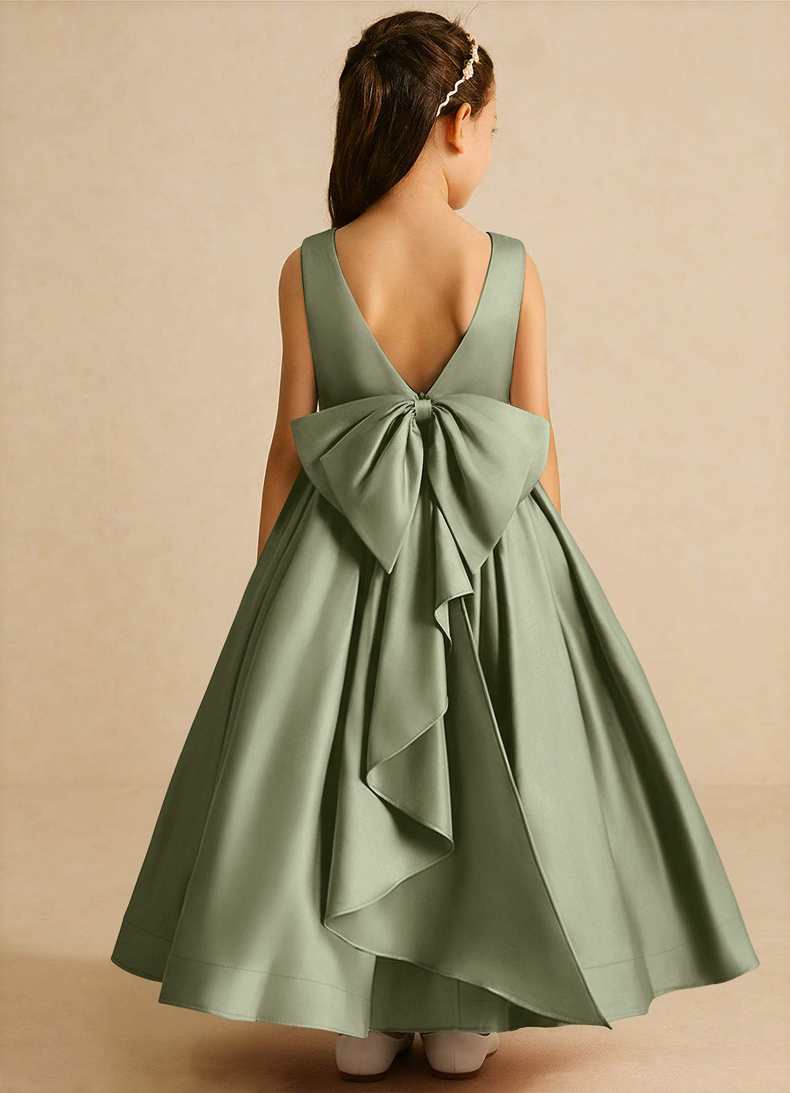 Abito Principessa in Raso Opaco Plissettato Pistacchio