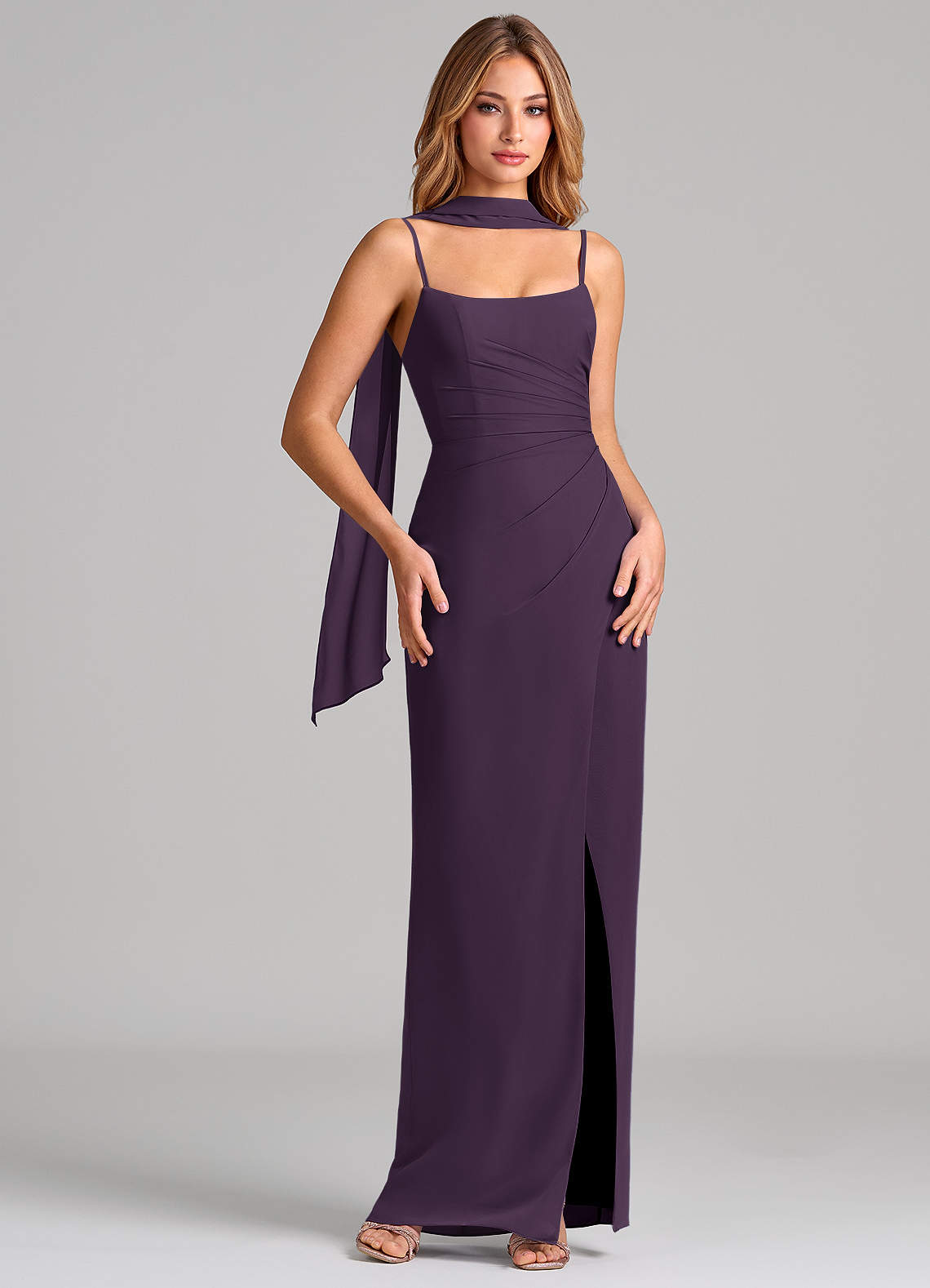 Abito Tubino in Chiffon Plissettato Prugna