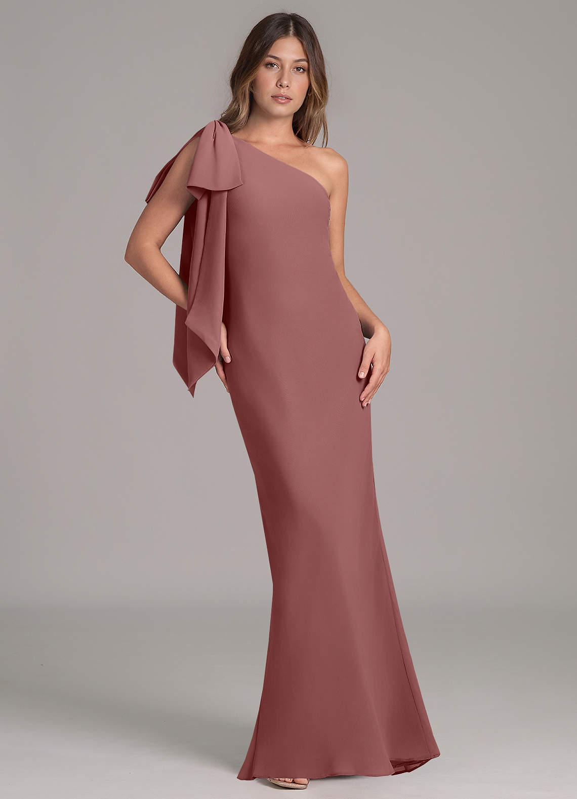 Abito A-Line in Chiffon Monospalla Rosa Del Deserto