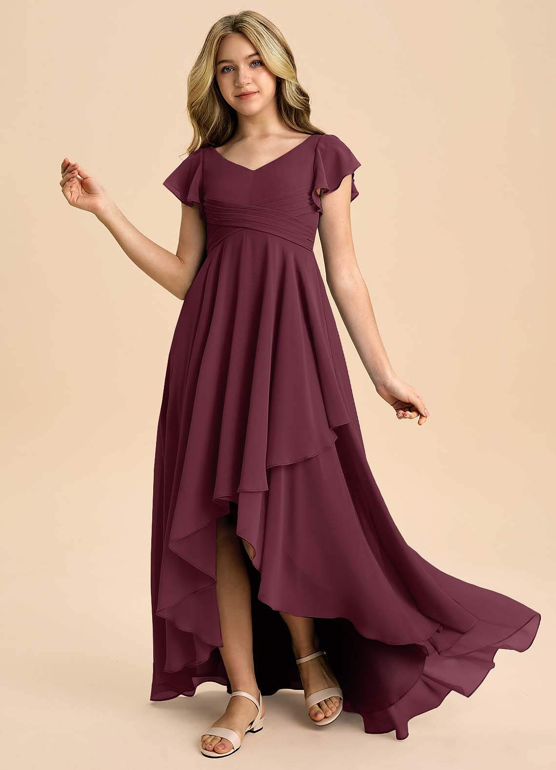 Abito A-Line in Chiffon Plissettato Cabernet