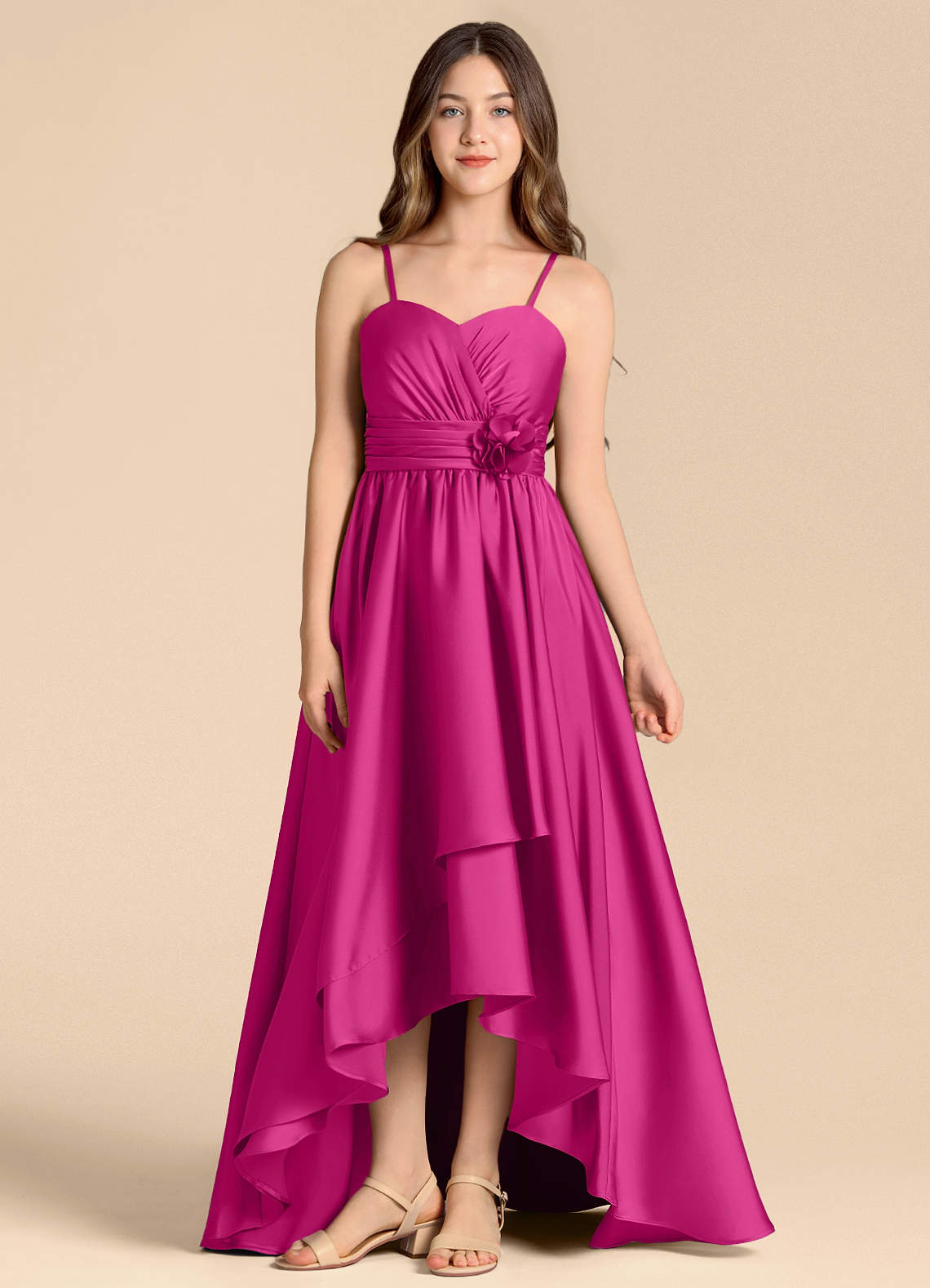 Abito A-Line in Raso Elasticizzato Scollo a Cuore Fucsia